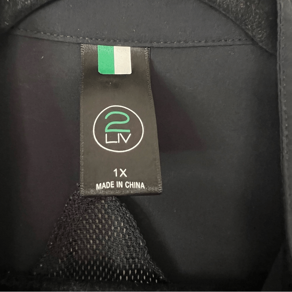 2LIV Athletic Jacket Black Zip Up Lightweight Jacket Mesh Accents Plus Size 1X