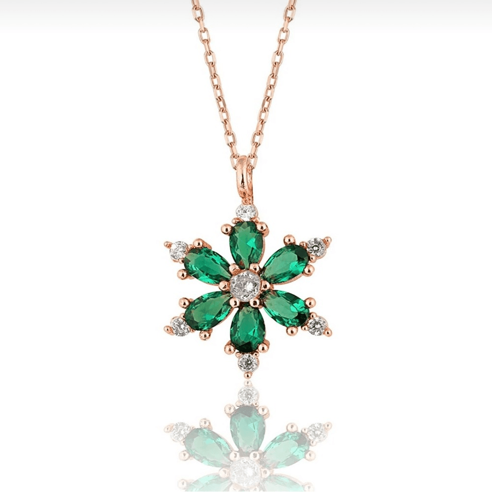 Zircon Stone Flower Rose Gold Plated 925 Sterling Silver Necklace | Minimalist Lotus Silver Necklace | Dainty Silver Necklace