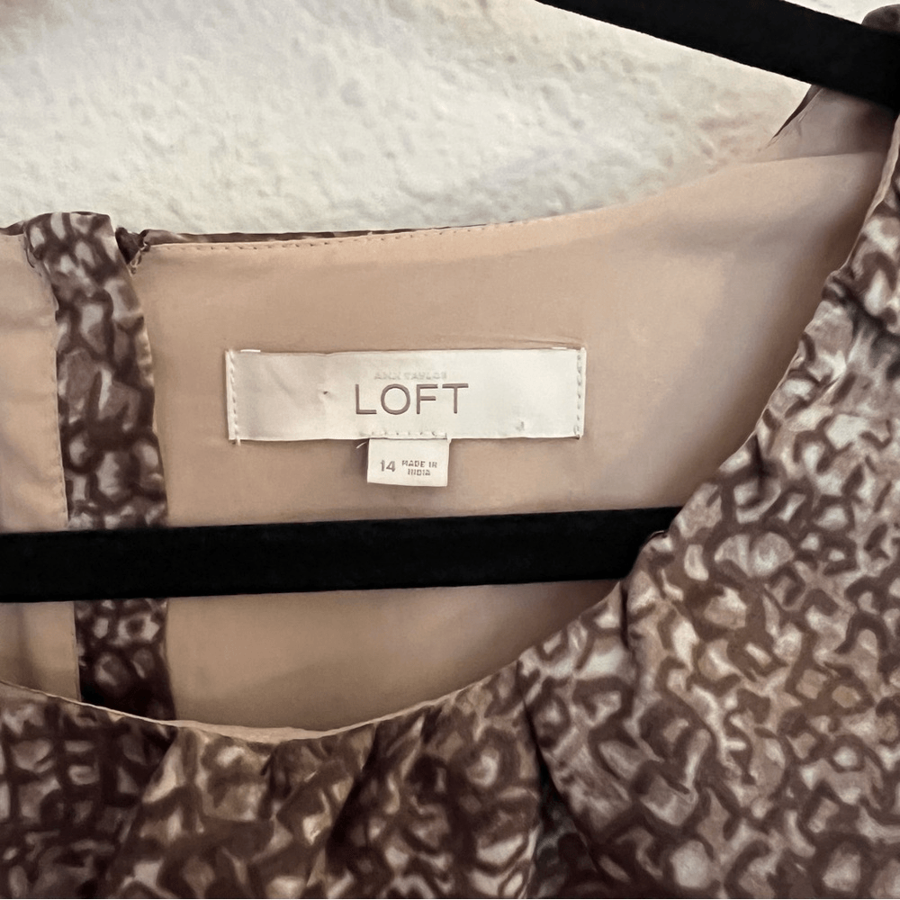 Ann Taylor LOFT Sleeveless Ruffle Printed Sheath Dress Size 14