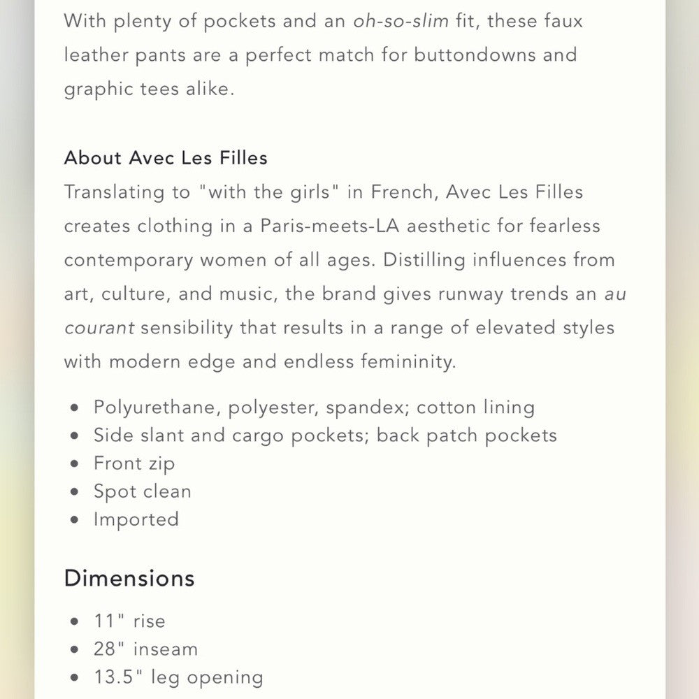 Anthropologie Avec Les Filles Gabi Vegan Faux Leather Utility Pants NEW Size XS