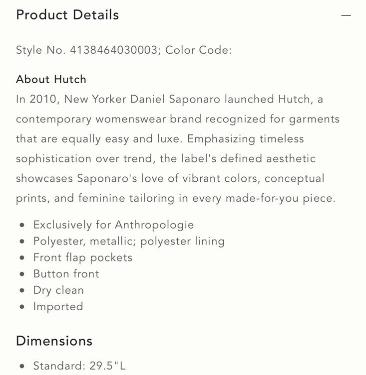 Anthropologie Hutch Textured Metallic Blazer Size Small.