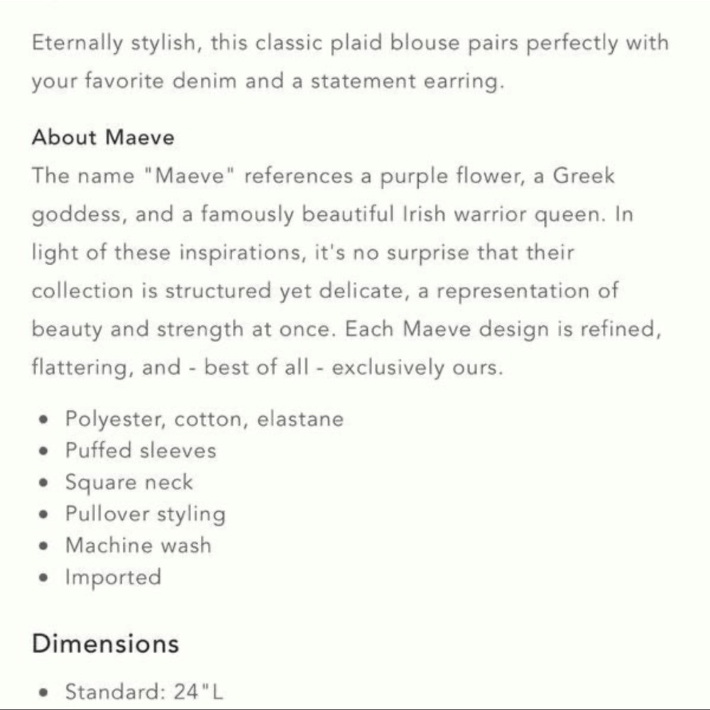 Anthropologie Maeve Neutral Plaid Square-Neck Blouse NEW Size Small