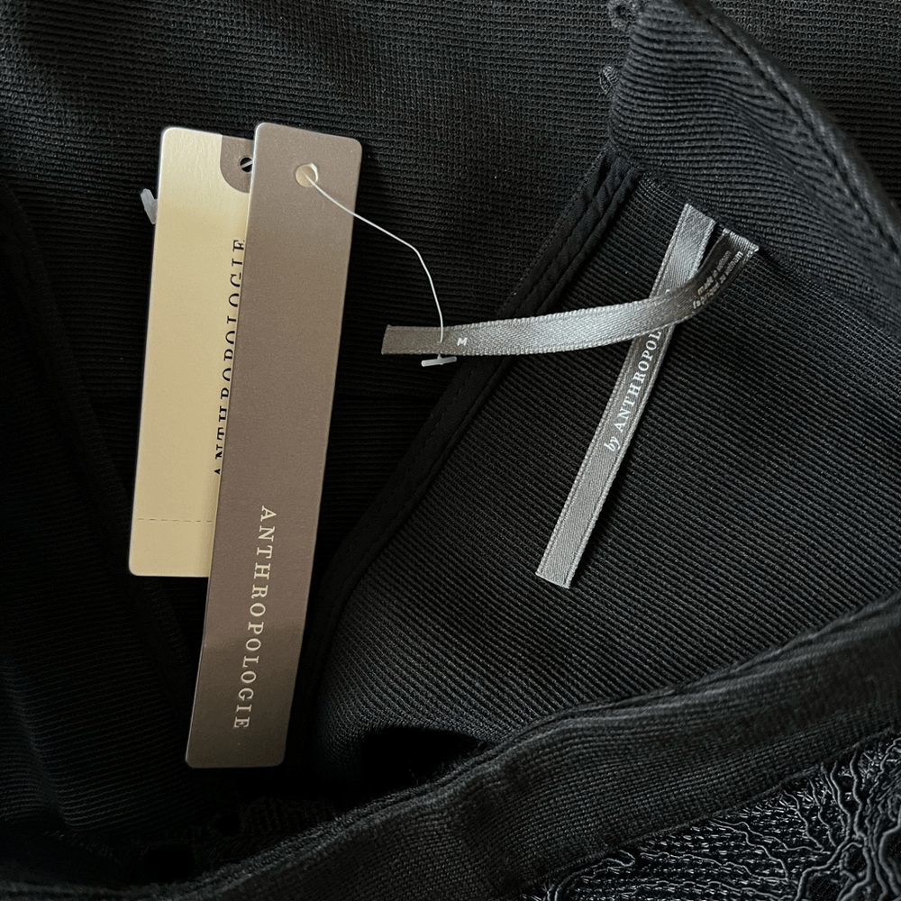 Anthropologie Mock-Neck Lace-Inset Fit & Flare Black Dress NEW Size Medium