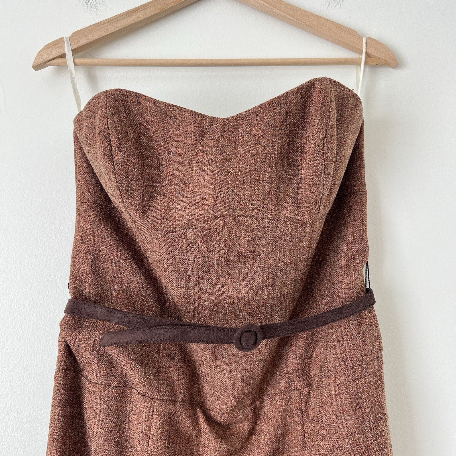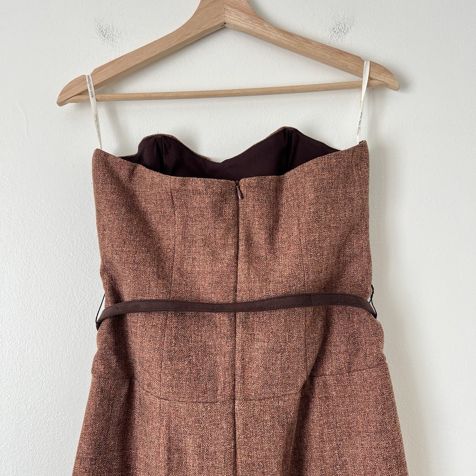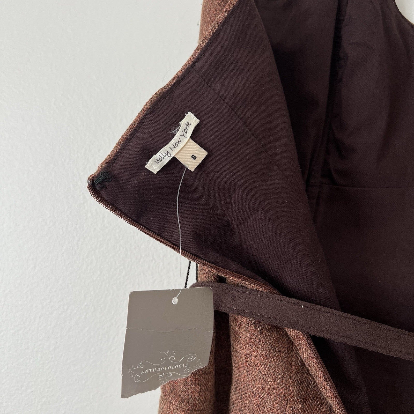 Anthropologie Molly New York Verite Tweed Sheath Mini Dress NEW Sz 8 Rust Brown