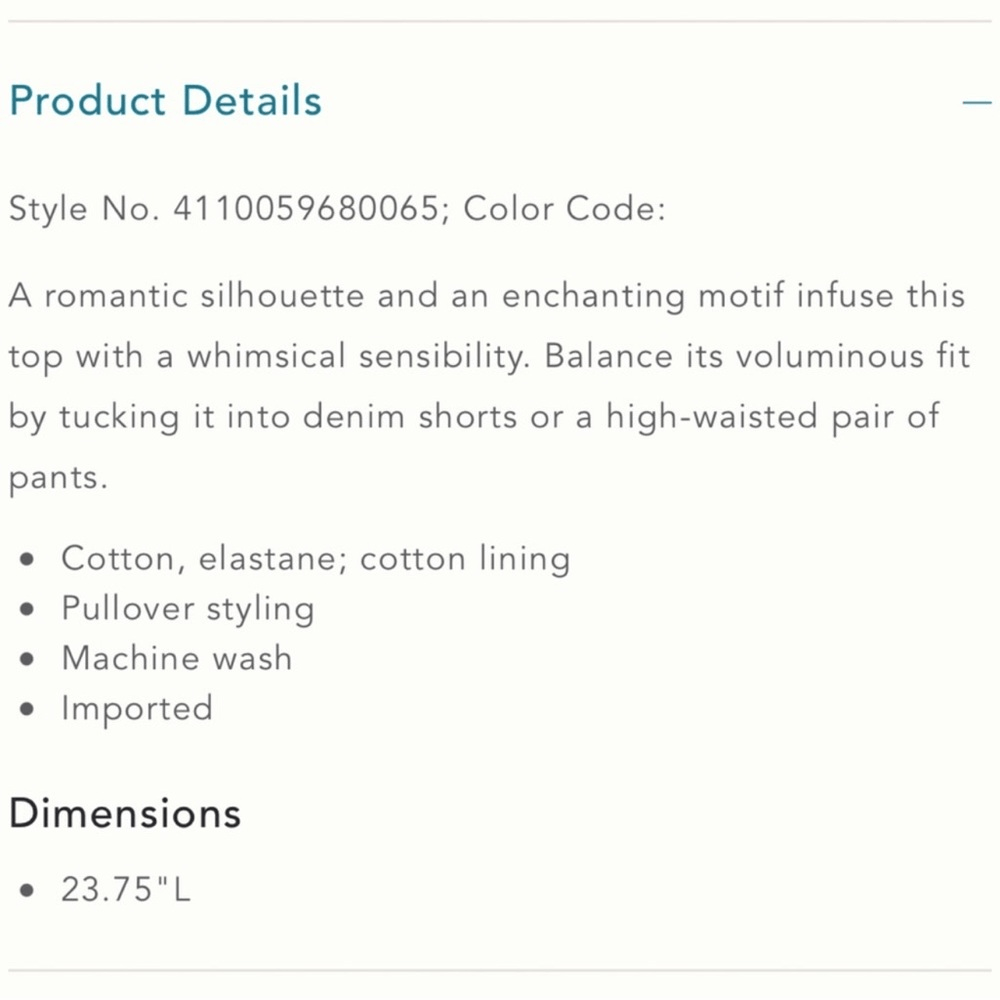 A romantic silhouette and an enchanting motif infuse this top with a whimsical sensibility. Balance its voluminous fit by tucking it into denim shorts or a high-waisted pair of pants.