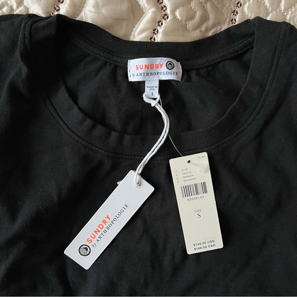Anthropologie Sundry Shirred Mini Dress in Black NEW Size Small