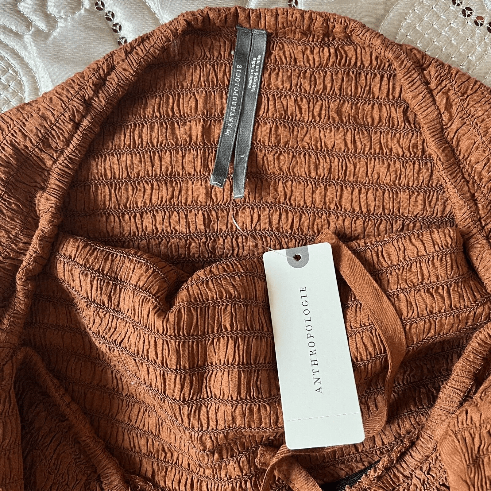 Anthropologie The Ellen Mini Dress Ruched Smocked Bodycon Sleeveless Brown L NEW