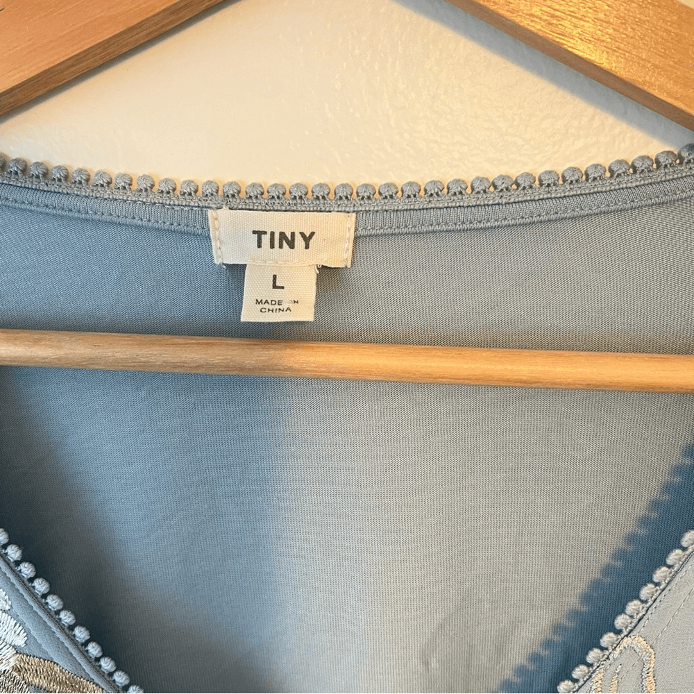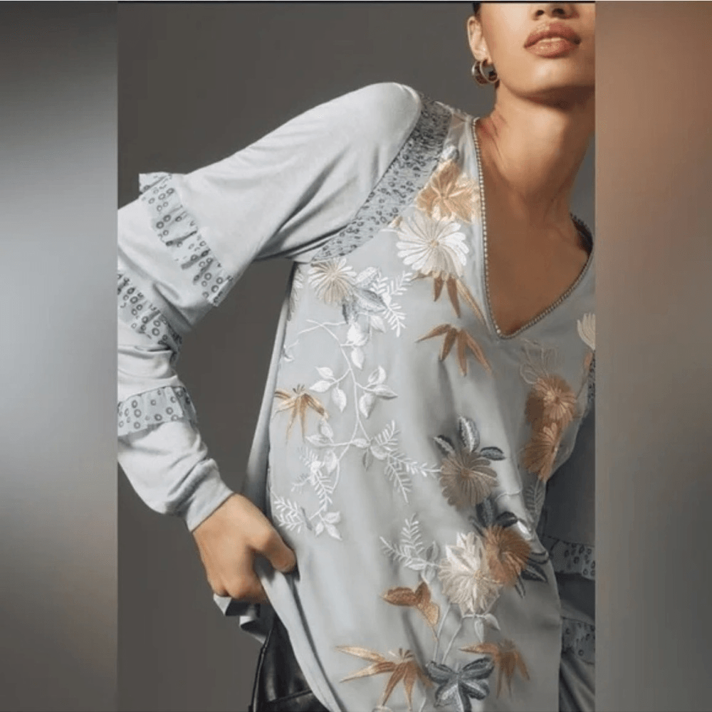 Anthropologie Tiny Frances Floral Long Sleeve Ruffle Blouse Blue Motif Size Larg
