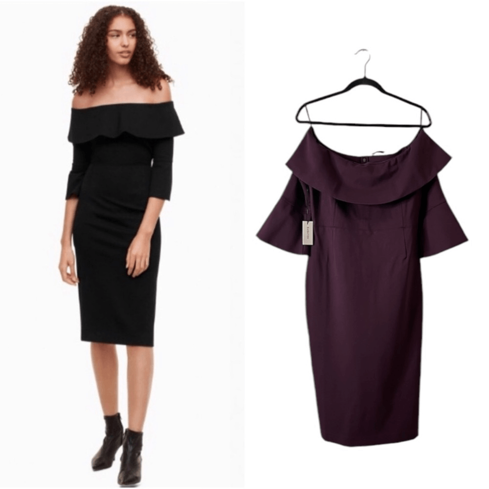 Aritzia Babaton Giovani Off The Shoulder Mini Pencil Dress in Burgundy NEW Sz 10