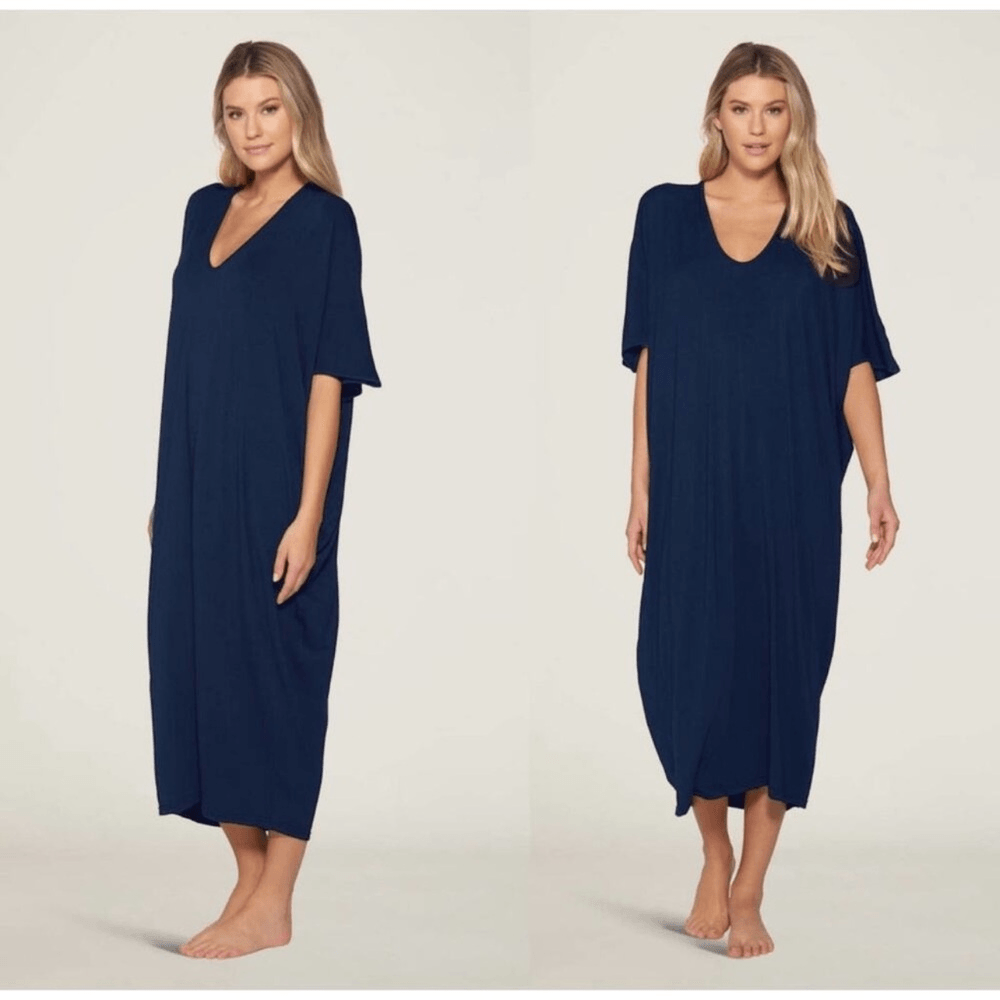 Barefoot Dreams Luxe Milk Jersey Caftan Navy Blue OS