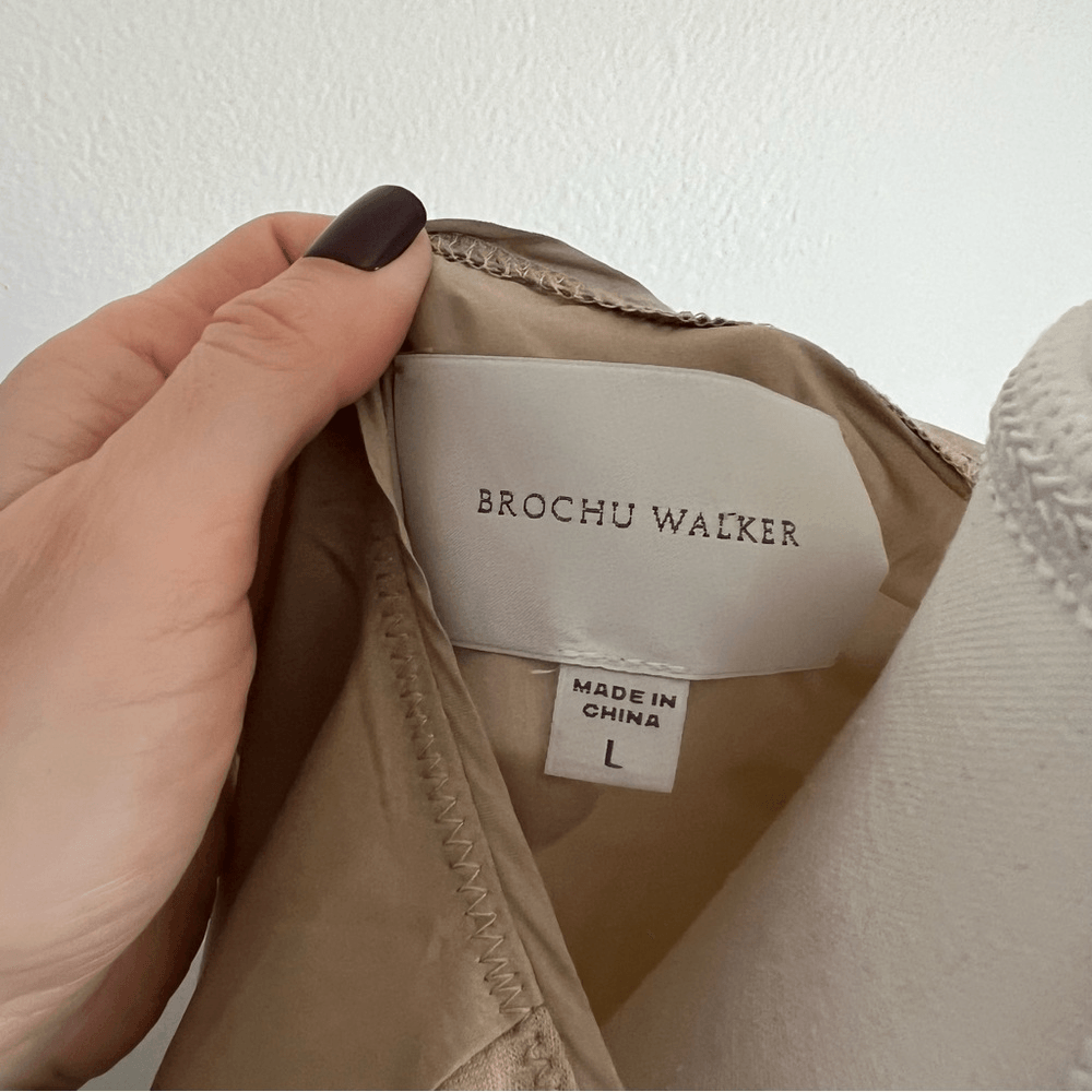 Brochu Walker Nadia Long Sleeve Silk Tee NEW Size Large in Tan