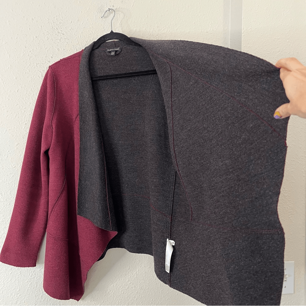 Eileen Fisher Burgundy Structured Moto Long Jacket Cardigan Medium Merino Wool