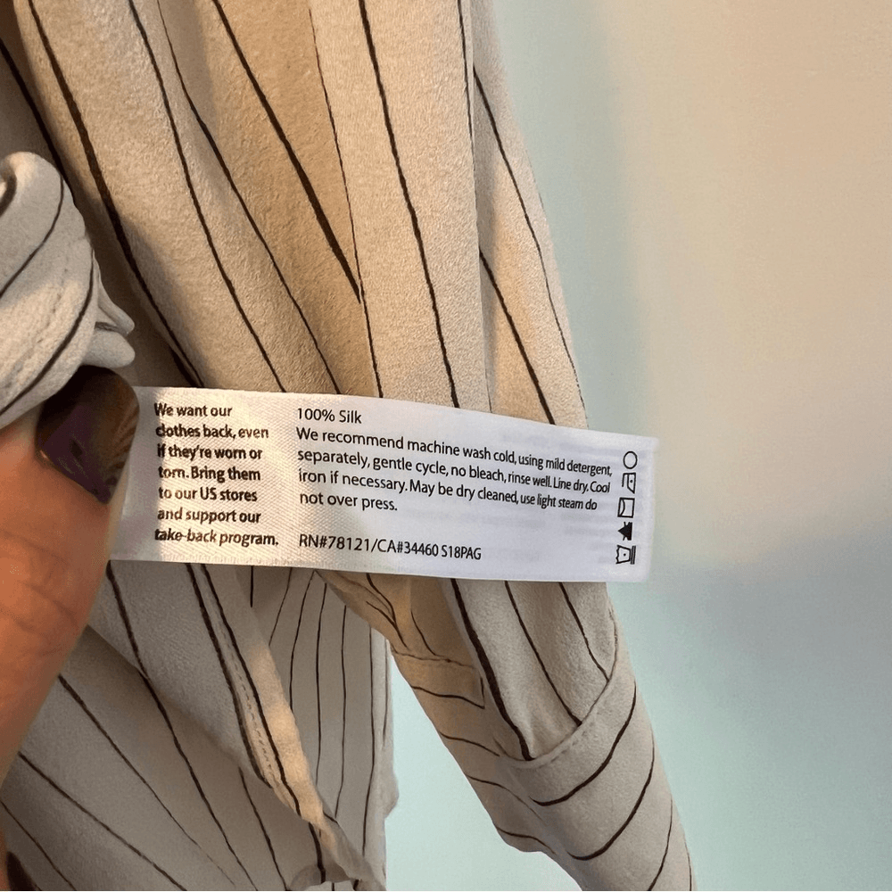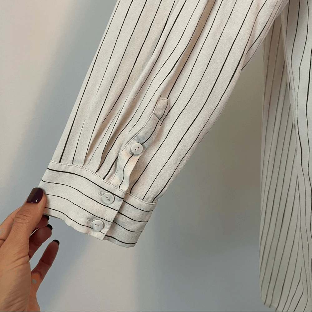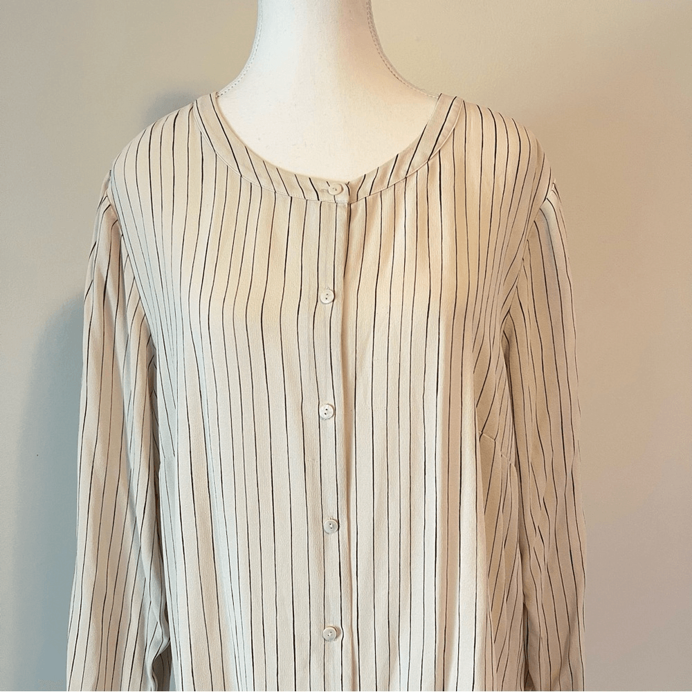 Eileen Fisher Pin Stripe Silk Georgette Crepe Print Long Tunic Shirt Blouse 1X