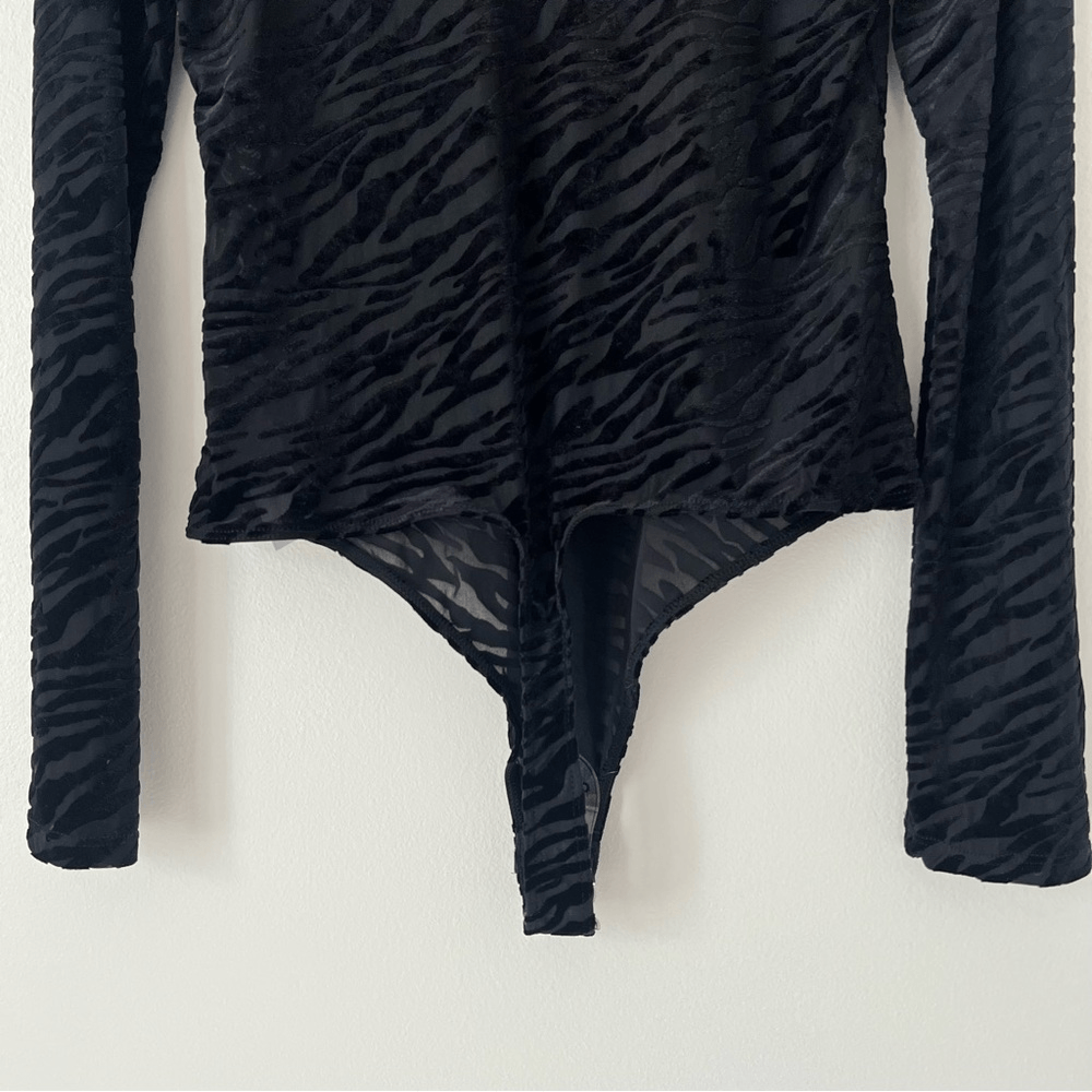 Good American Burnout Zebra Mesh Velvety Bodysuit NEW Size XXL Animal Print