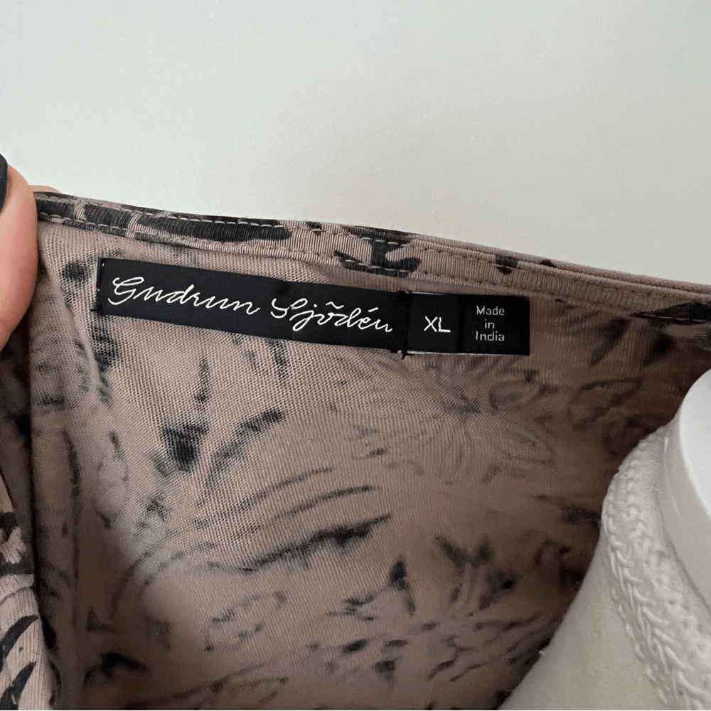 Gudrun Sjoden Floral Mini Tunic Dress Long Sleeve Size XL Brown & Black Pockets