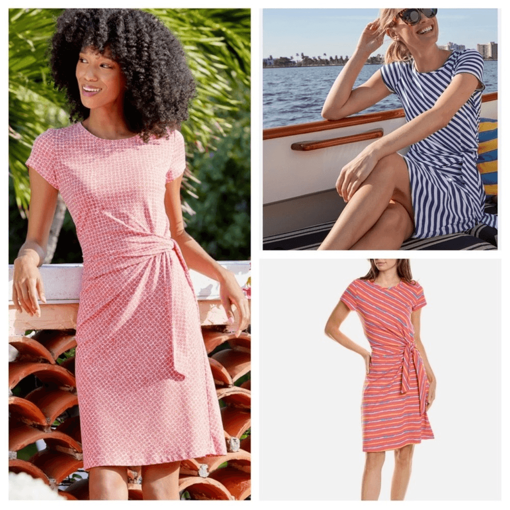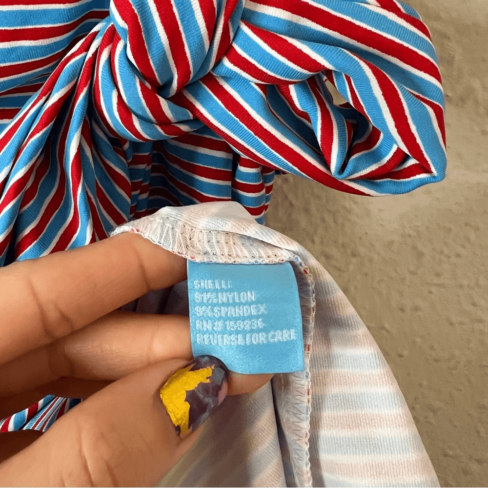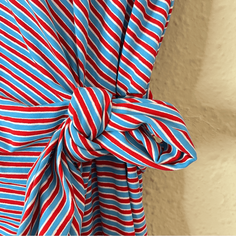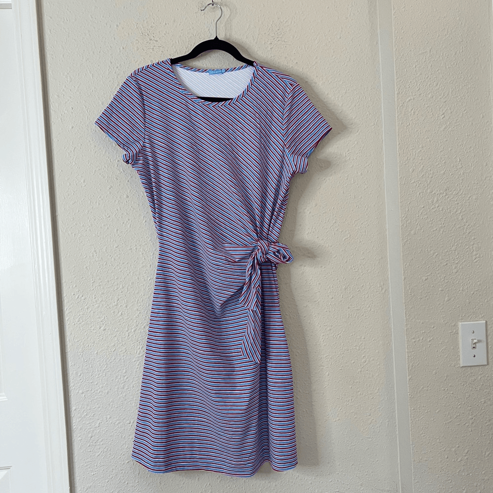 J. McLaughlin Elora Side Tie Dress Catalina Cloth Red Blue Stripe Size XL