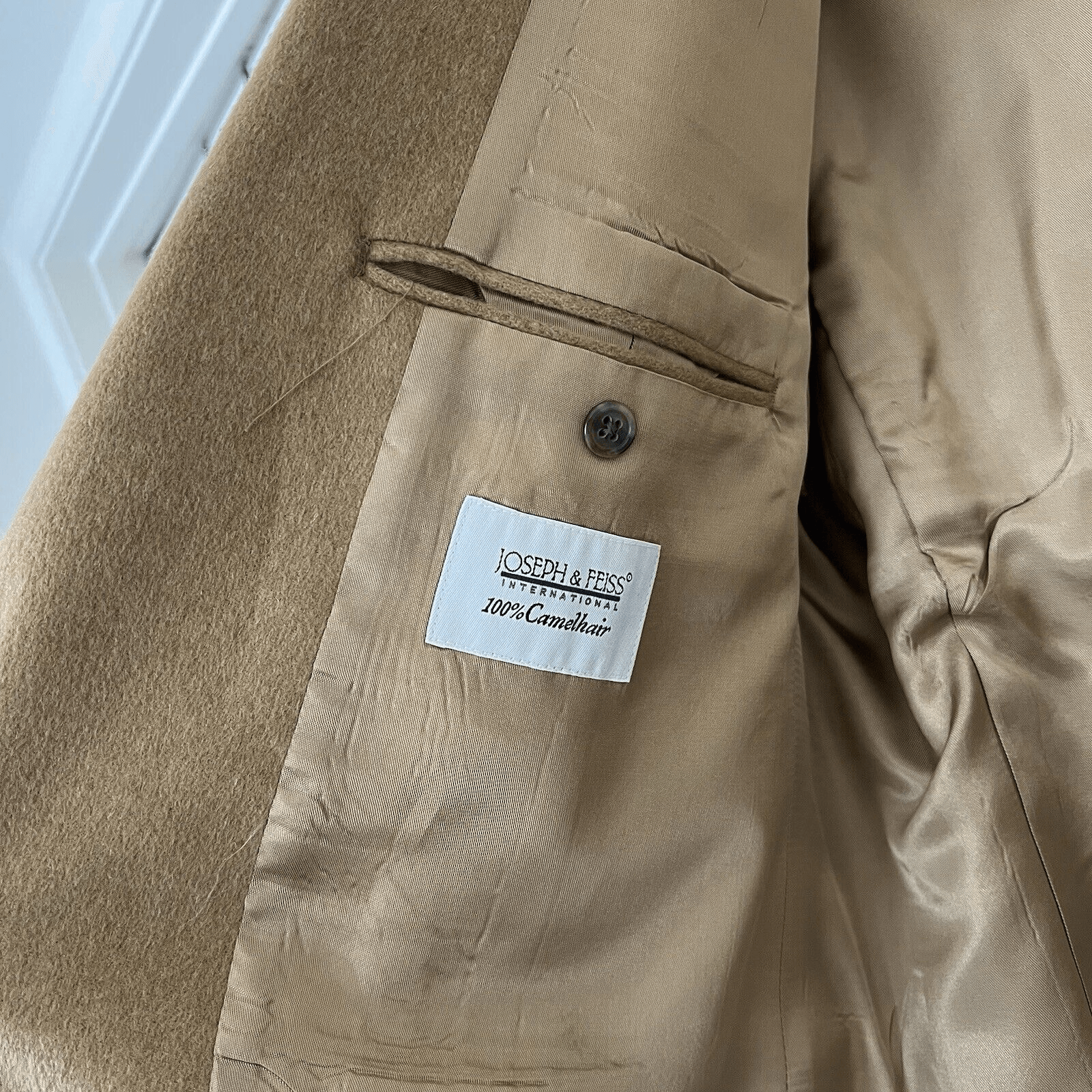 JOSEPH FEISS Mens Camel Hair Blazer Suit Size 46L Sport Coat Casual Jacket