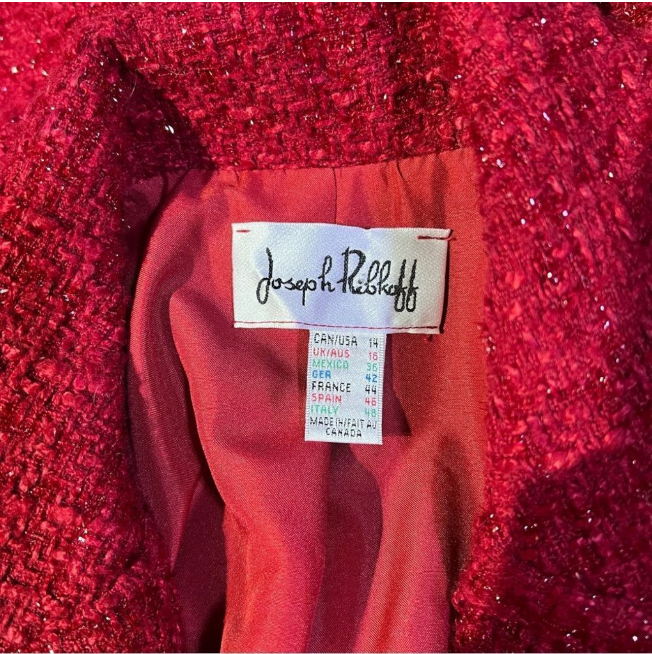 Joseph Ribkoff Red Metallic Tweed Blazer Jacket Size 14 Holiday Christmas