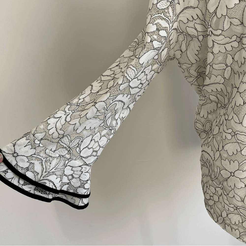 KARL LAGERFELD Paris Floral Lace Overlay Blouse Bell Sleeve NEW Size Medium