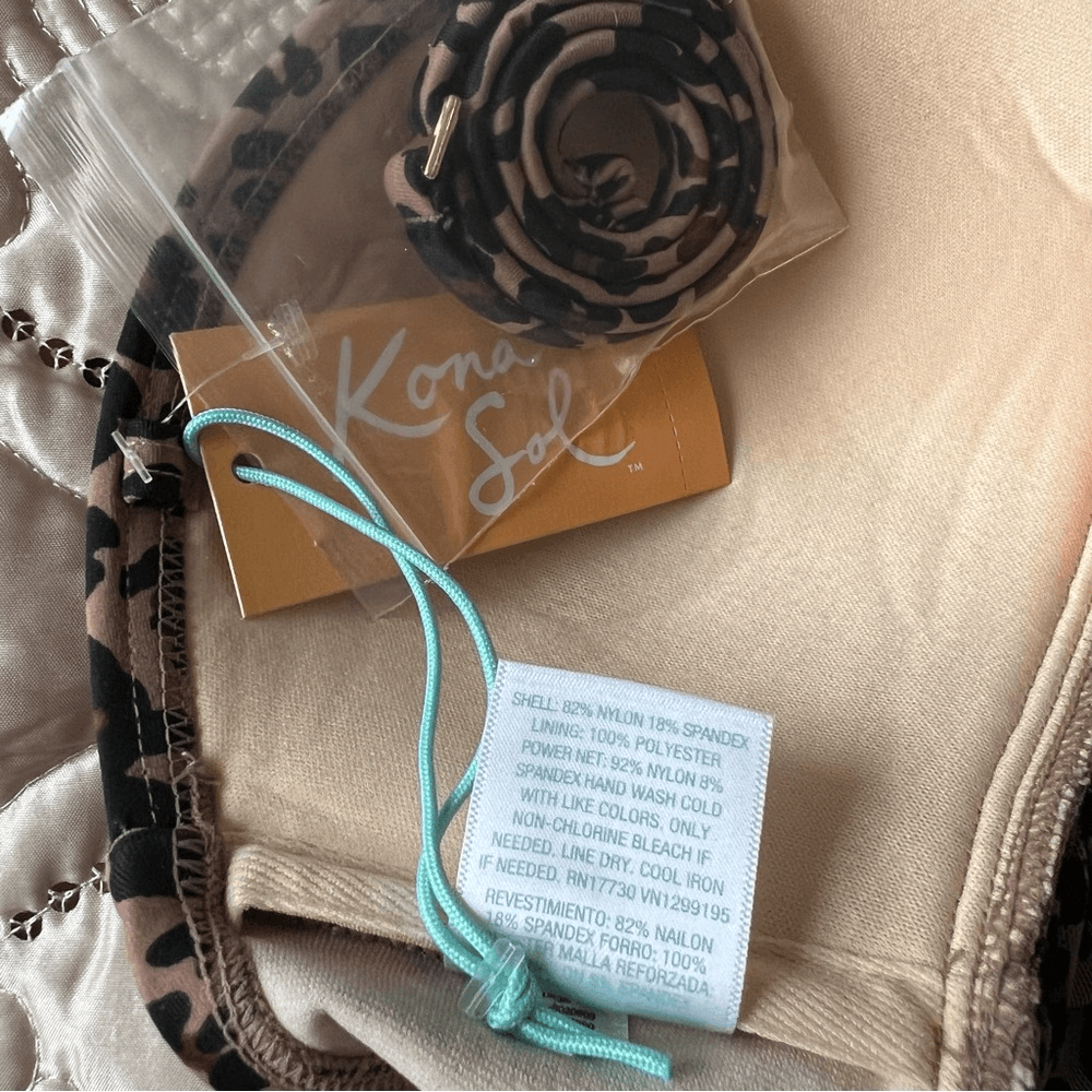Kona Sol Leopard Print Tankini Swim Top Twist Front Bandeau Flyaway NEW Small