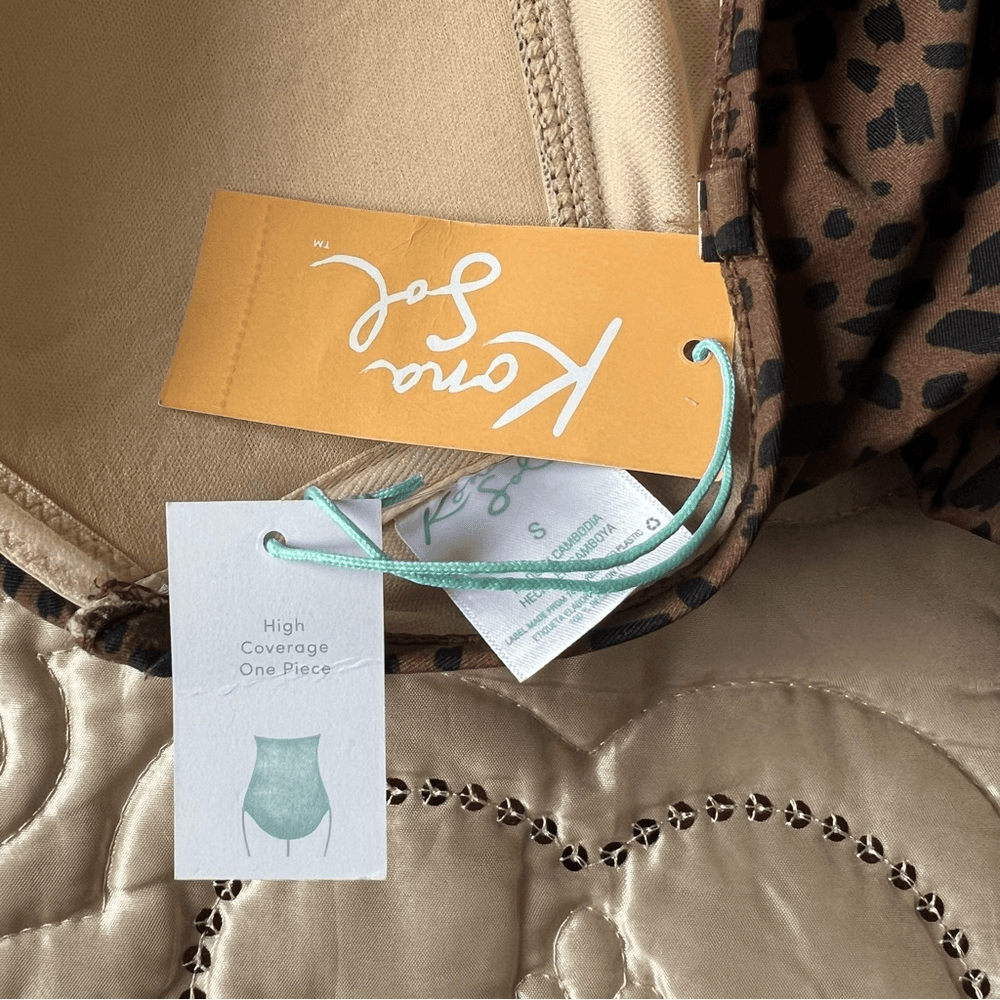 Kona Sol Swim Leopard Swimsuit Bandeau Flounce High Coverage One Piece NEW Small