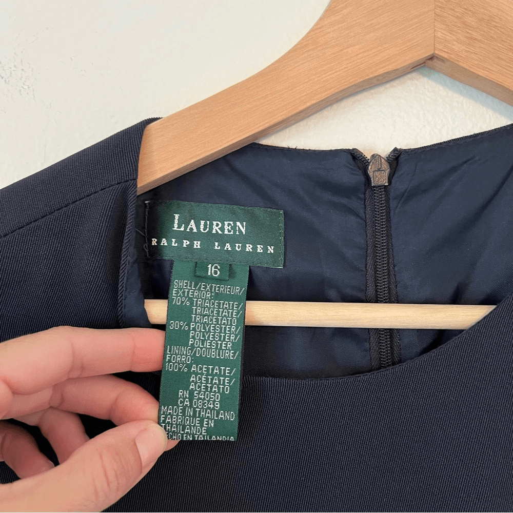 Lauren Ralph Lauren Navy Blue Sheath Dress Sleeveless Size 16
