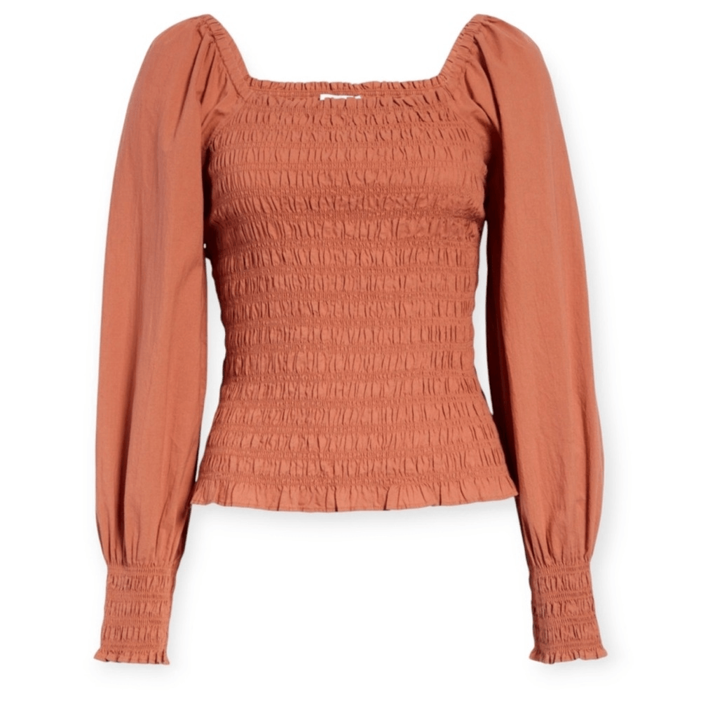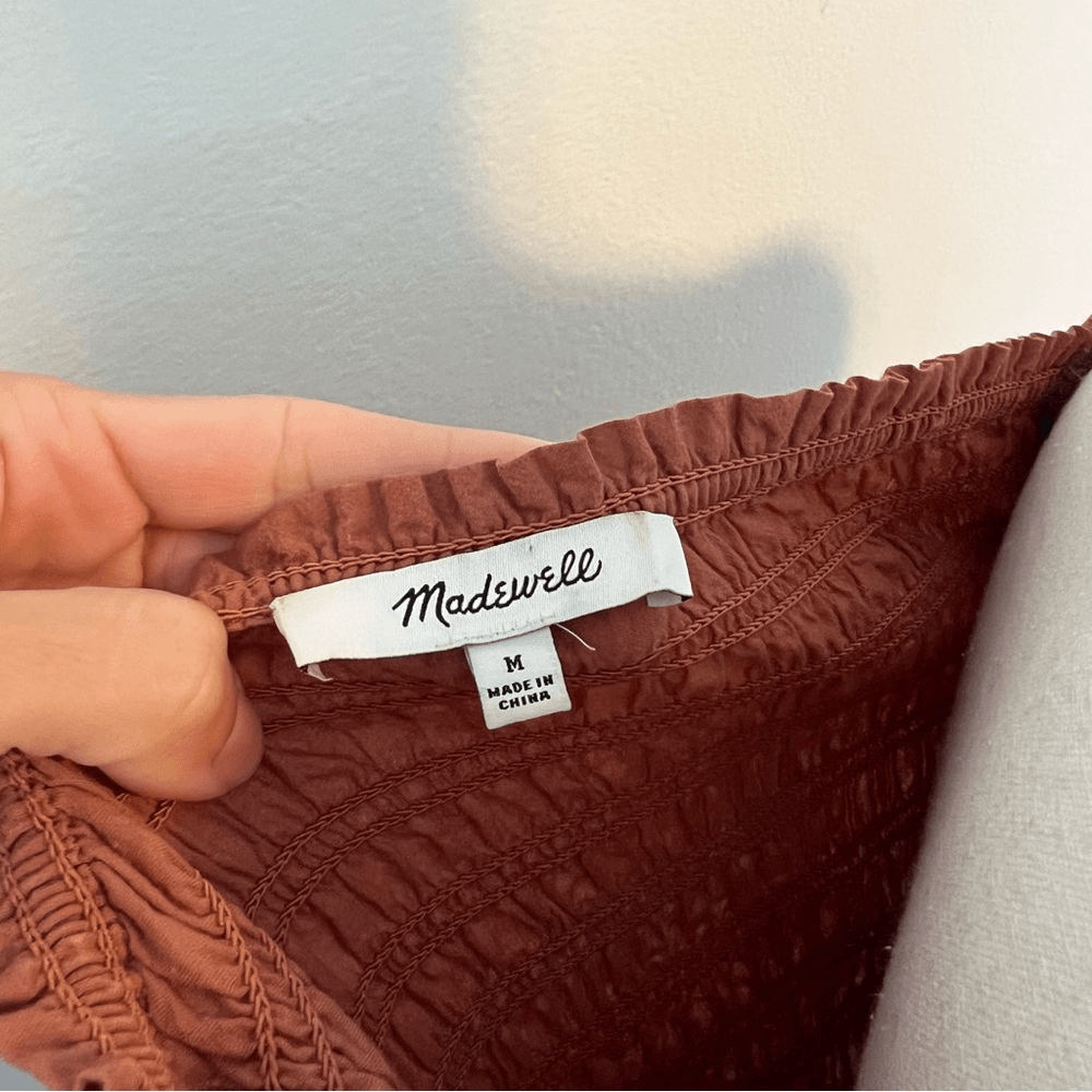 Madewell Lucie Bubble Sleeve Smocked Blouse Top Size Medium Boho Preppy