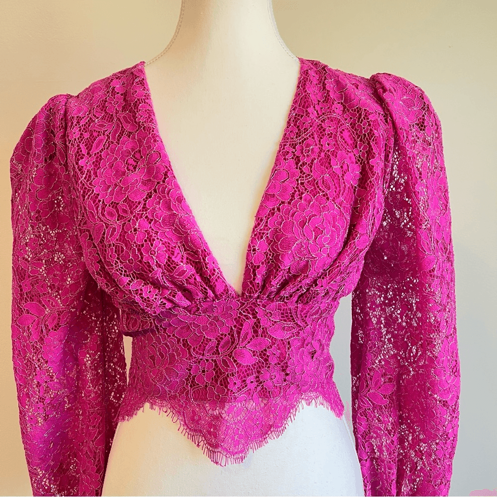 NBD Merlot Lace Blouse Top in Magenta Size Small Long Sleeve