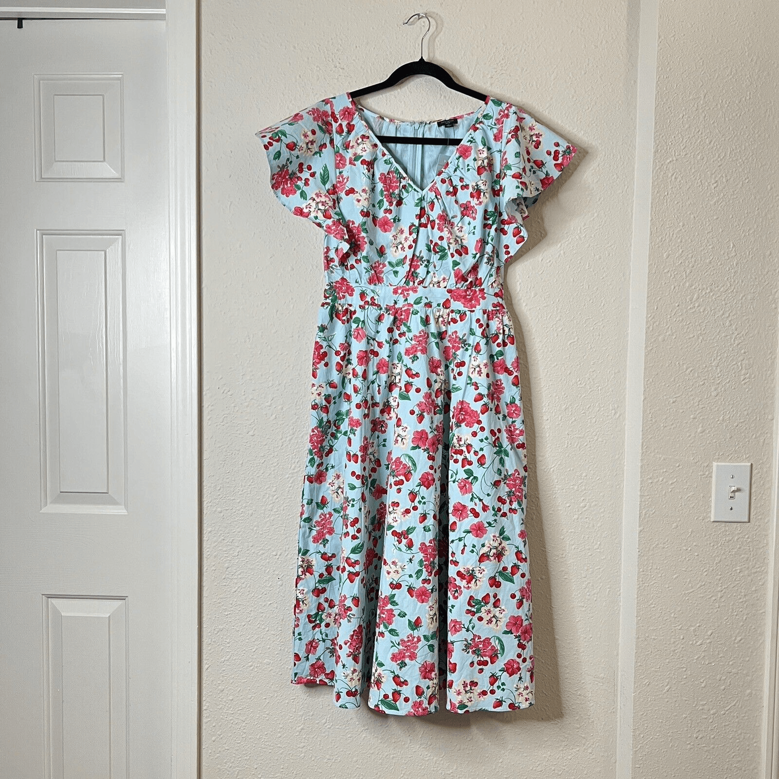 NEW Ann Taylor Strawberry Cherry Flutter Sleeve Flare Midi Dress Size 6 Petites