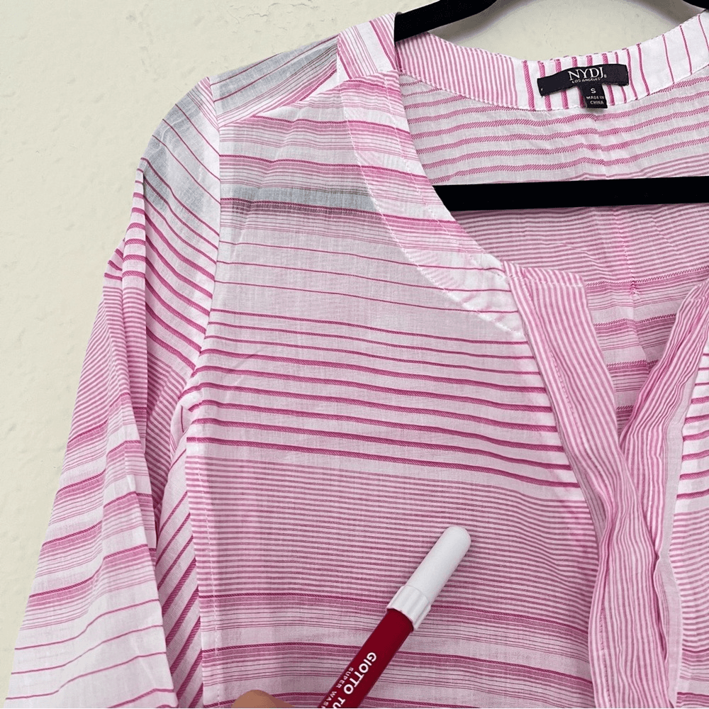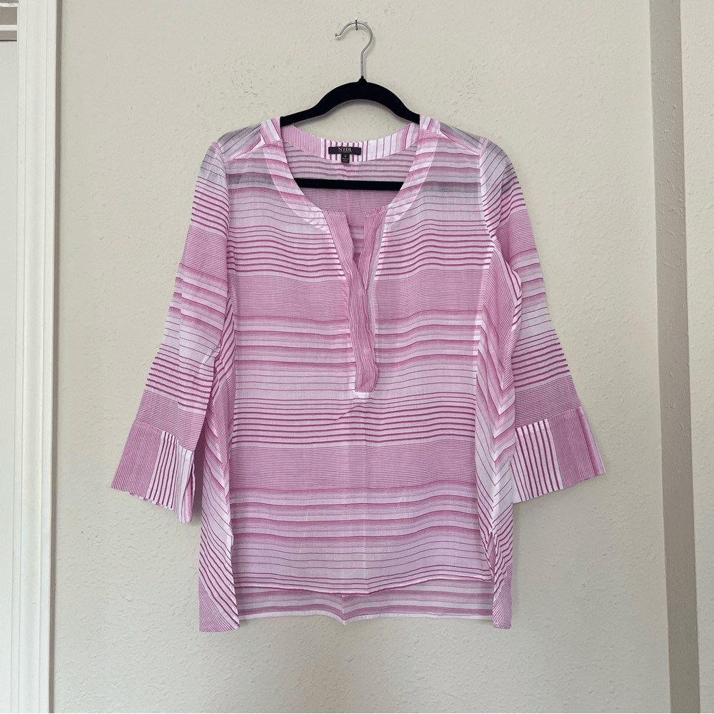 NYDJ Regatta Stripe Split Neck 3/4 Sleeves Cotton Tunic Size Small