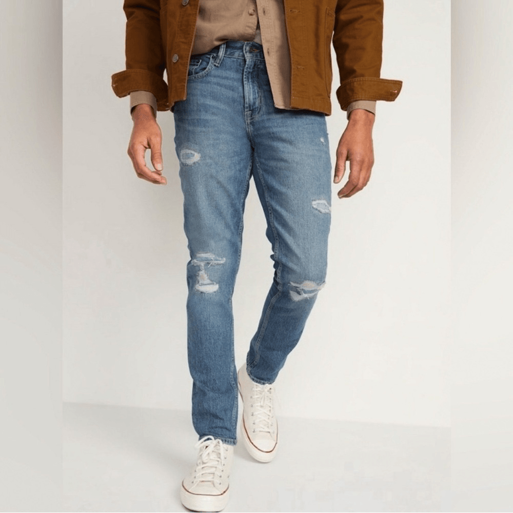 Old Navy Men's Medium Wash Slim Built-In Flex Rip-and-Repair Jeans NEW 33x32