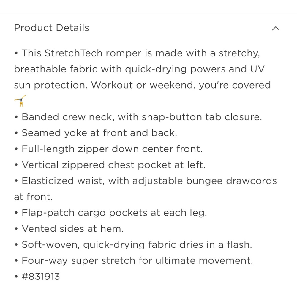Old Navy StretchTech Sleeveless Zip-Front Cargo Romper Plus Size 4X