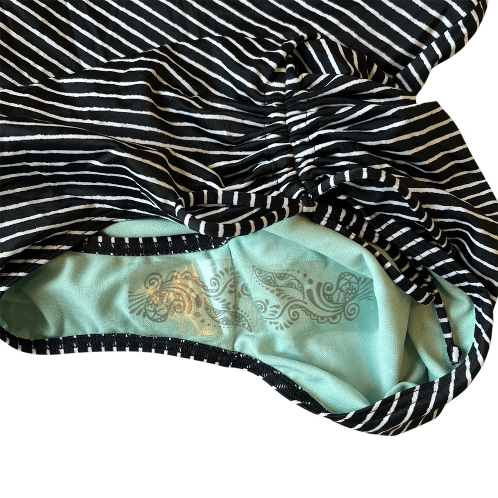 Prana Moorea Striped One Piece Swimsuit NEW Size XL Black White