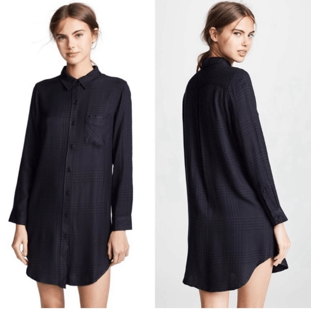 Rails Bianca Charcoal Shadow Plaid Flannel Shirt Dress Tunic Size Medium