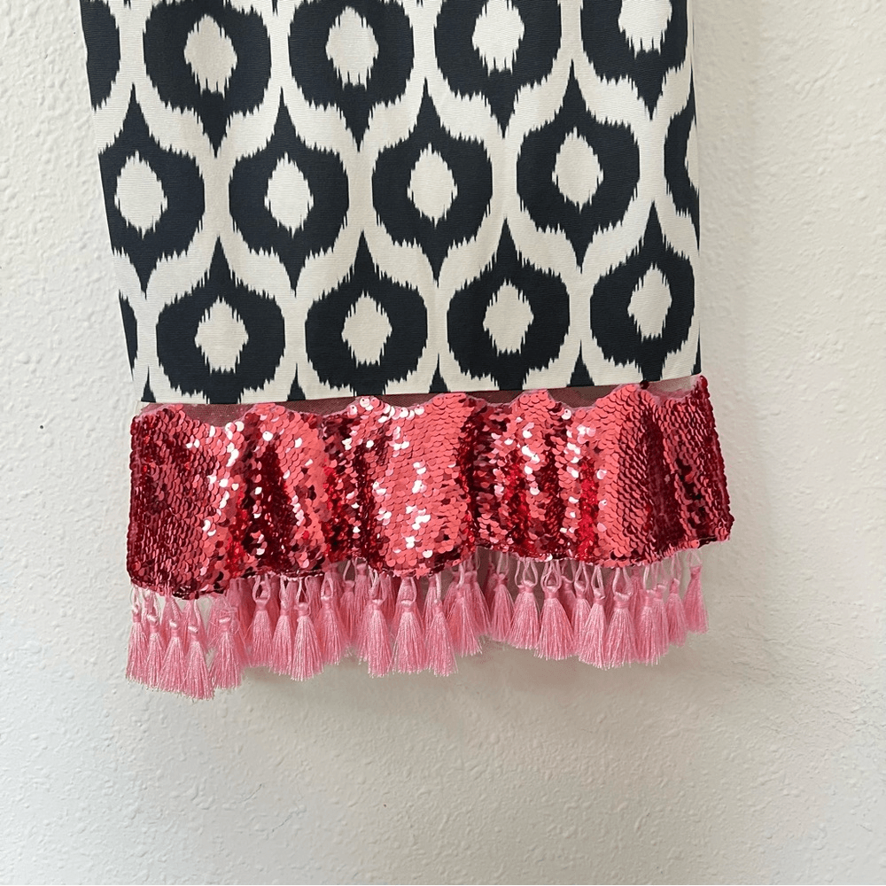 Color: Cream, Black with pink sequins and tassels
