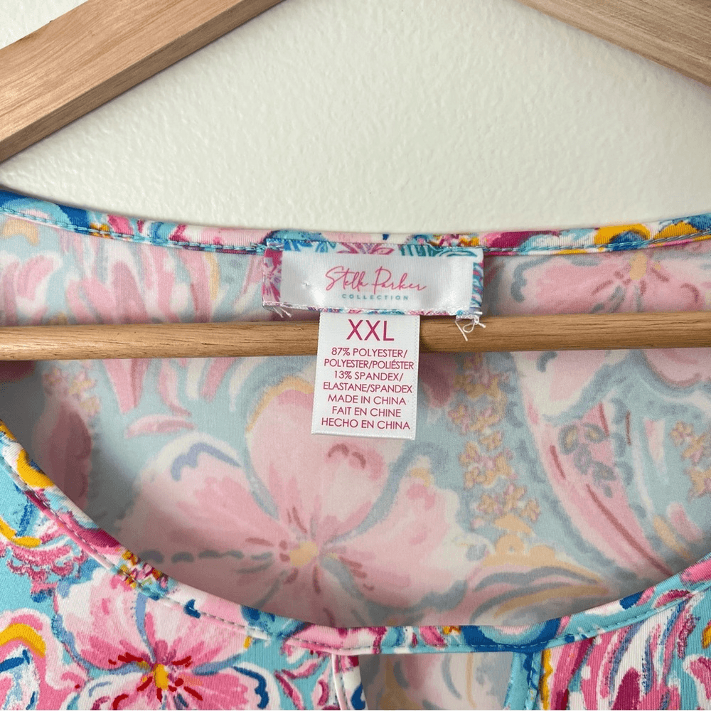 Stella Parker Bayou Blooms UPF50 Tunic Dress NEW Size XXL Pink Blue Floral Beach