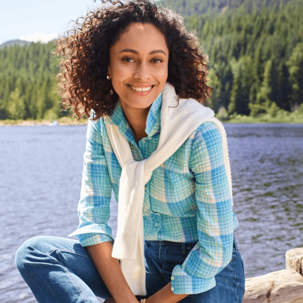 Talbots Cotton Button Front Shirt - Ornament Plaid Metallic in Blue Size 1X