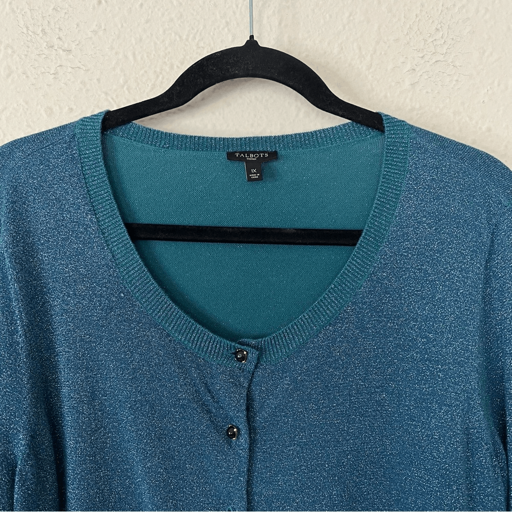 Talbots Metallic Shimmer Cardigan Sweater Plus Size 1X Holiday Festive