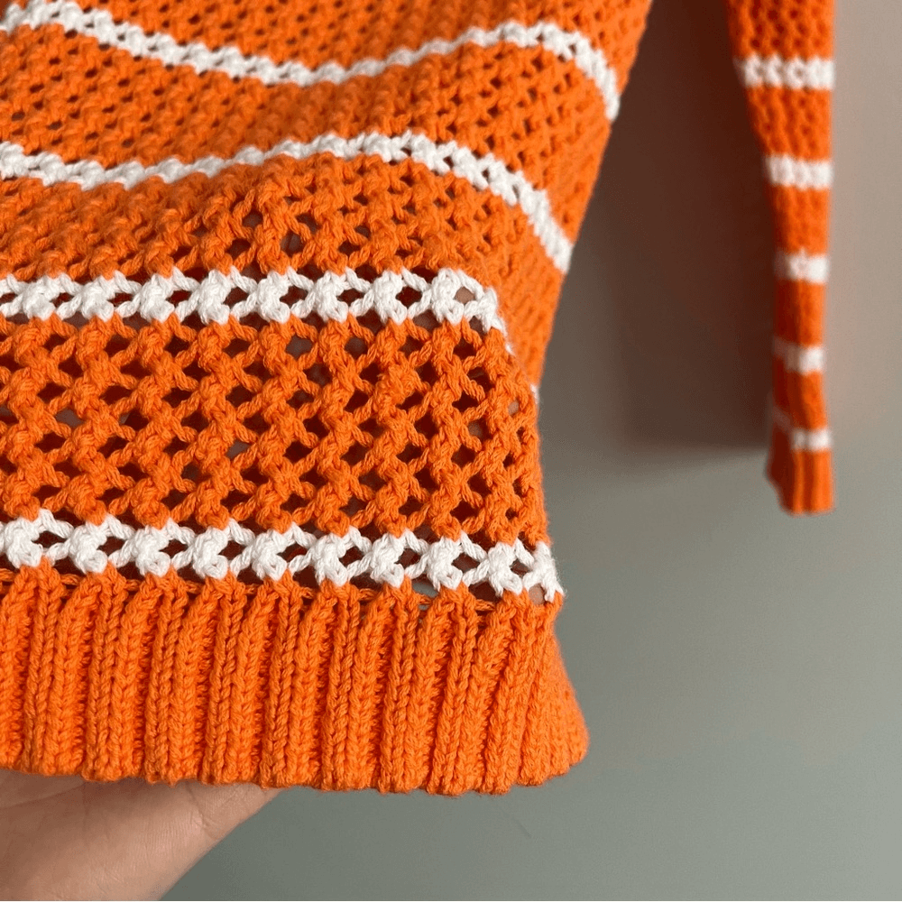 Talbots Open Weave Long Sleeve Sweater Cotton NEW Size Large Striped Resortwear