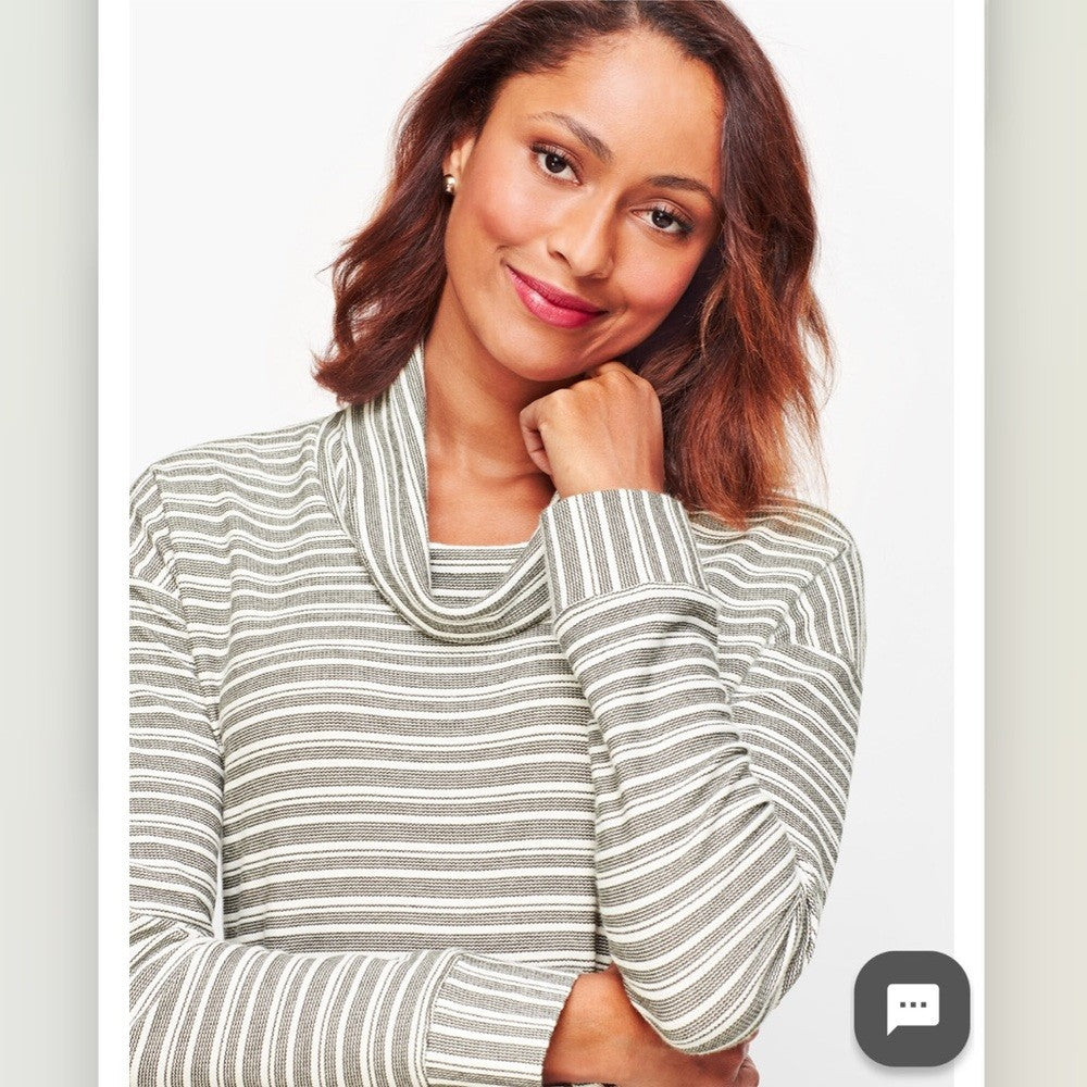 Talbots Womens Cowl Neck Striped Pullover Sweater Size Large