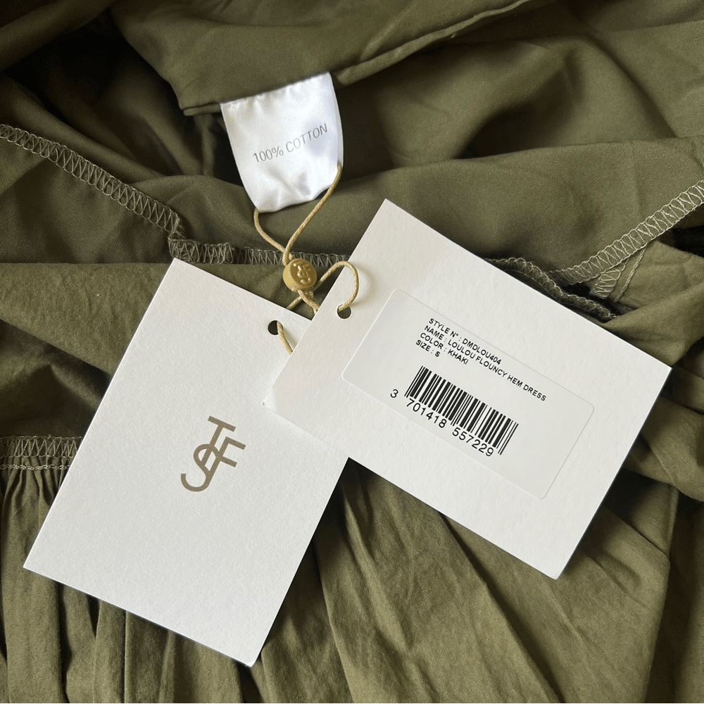 The Frankie Shop LouLou Flouncy Hem Maxi Dress NEW Size Small in Khaki