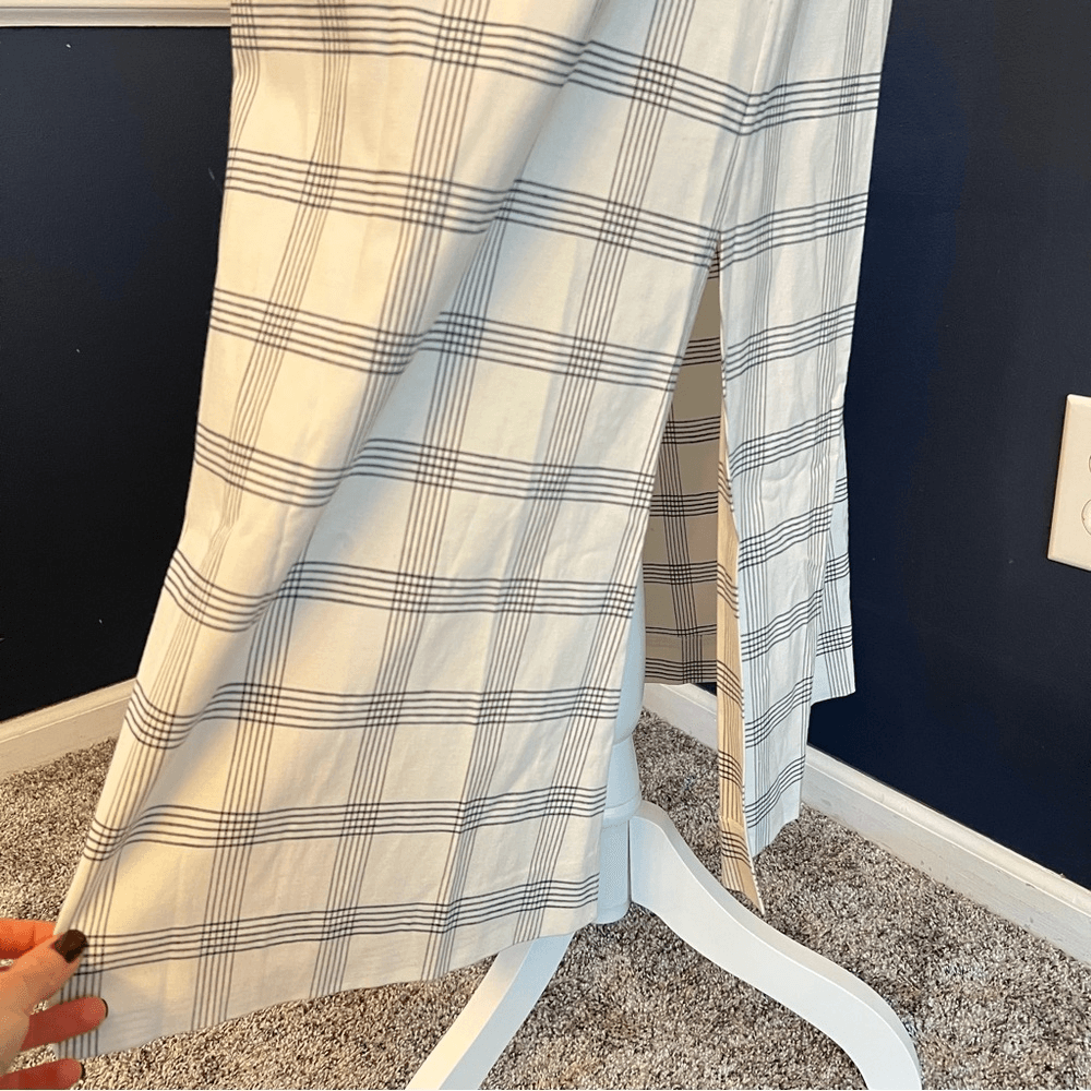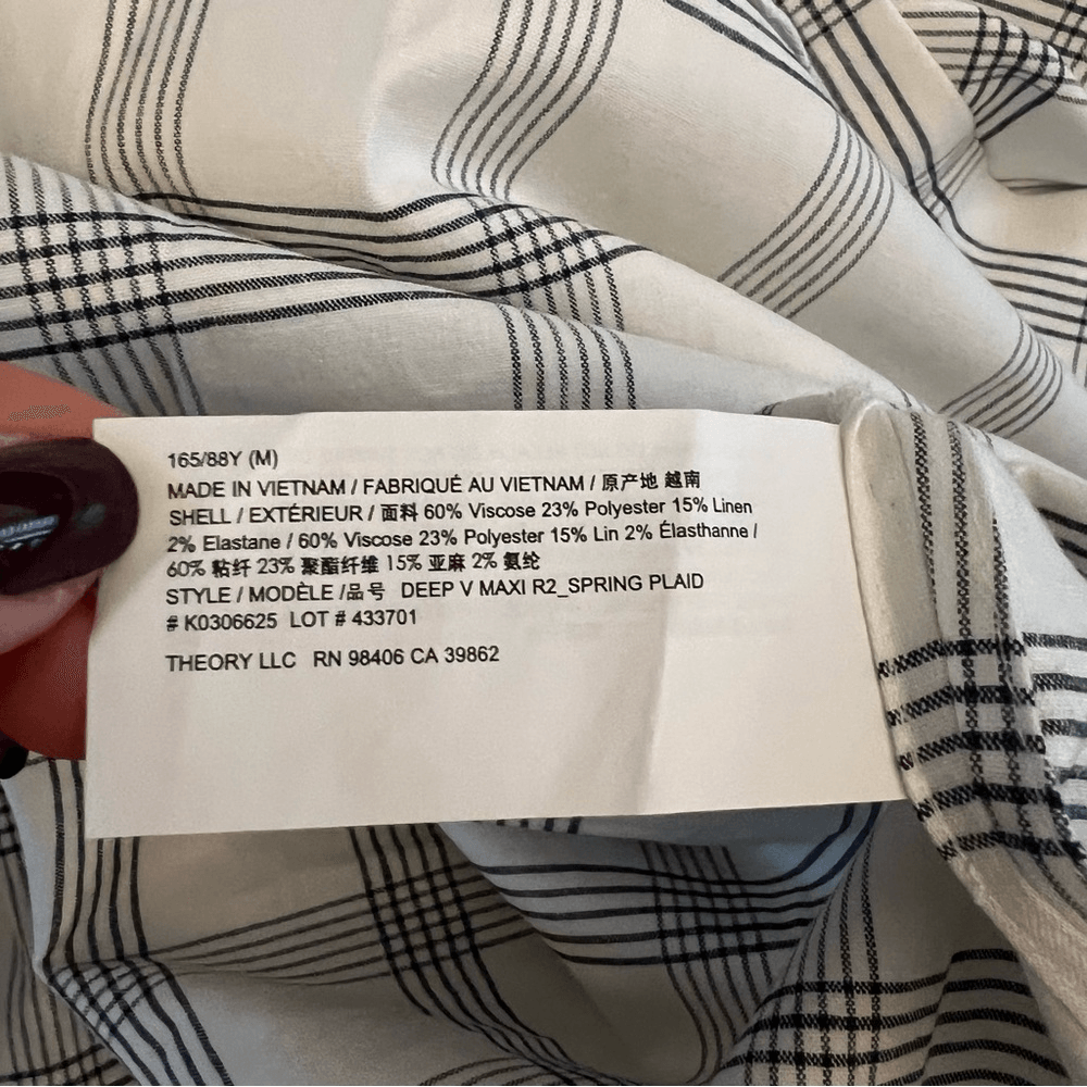 Theory Deep V Linen Blend Spring Plaid Midi Dress Size Medium in Ivory