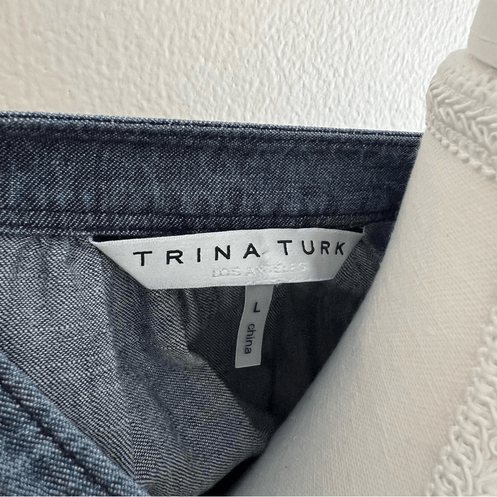 Trina Turk Womens Movie Colony Linen-Blend Dress in Blue Size Large