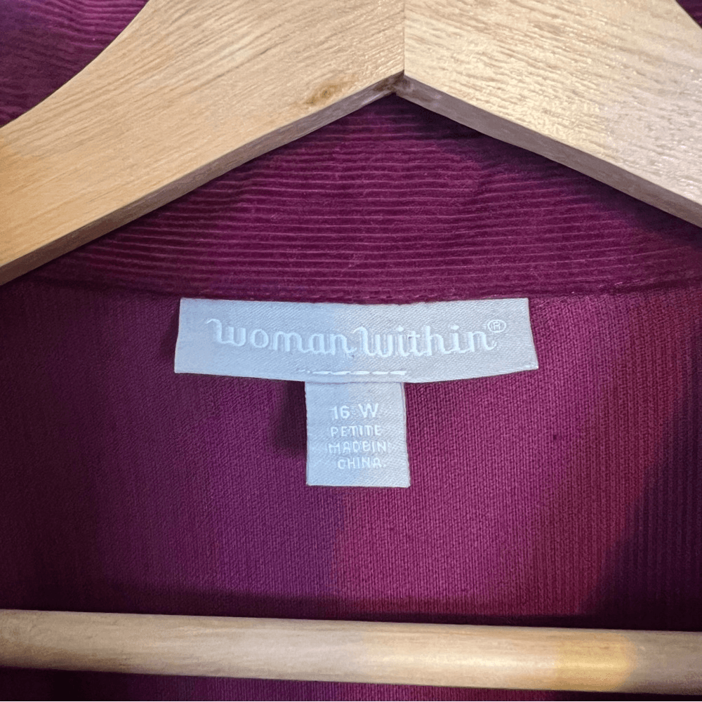 Woman Within Button Front Corduroy Midi Dress Size 16W Petite Purple Long Sleeve