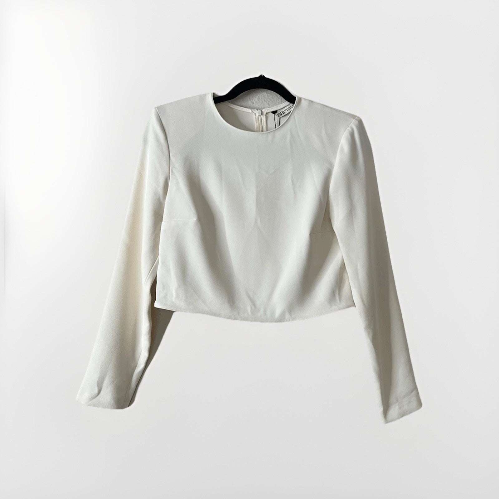 ZARA Long Sleeve Cropped Blouse Top NEW Size XS in Ivory