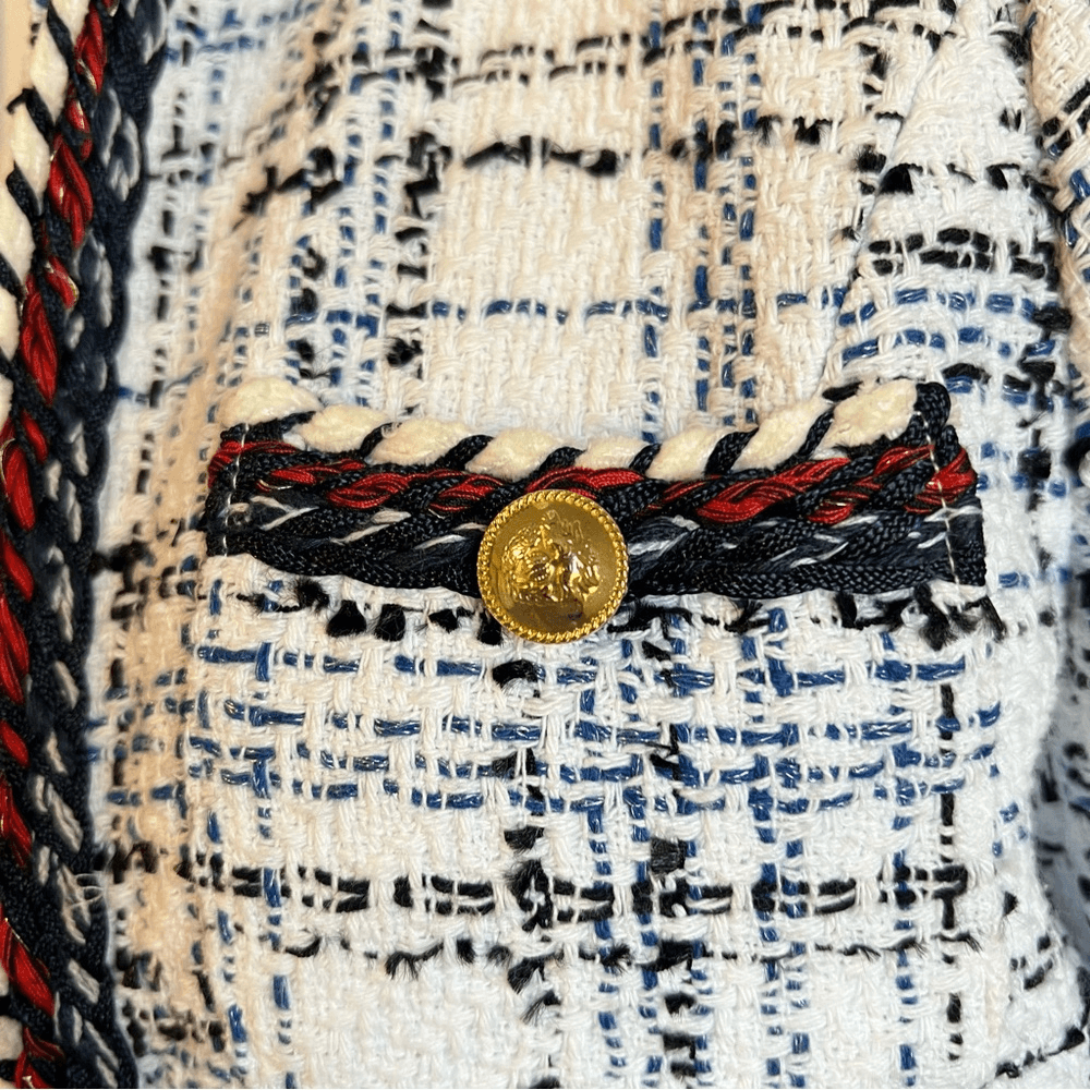 ZARA Textured Tweed Blazer Size Small White, Red, Blue Collarless Open Front