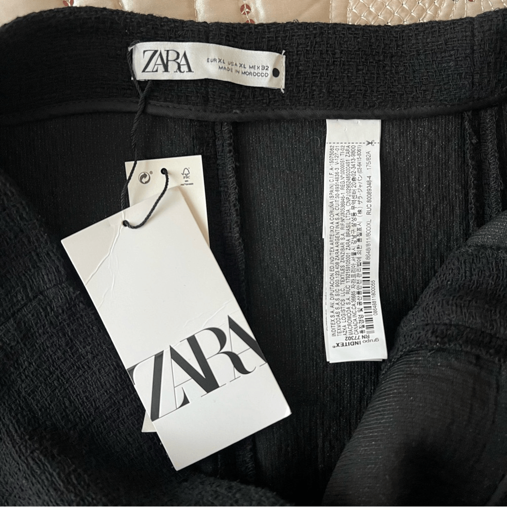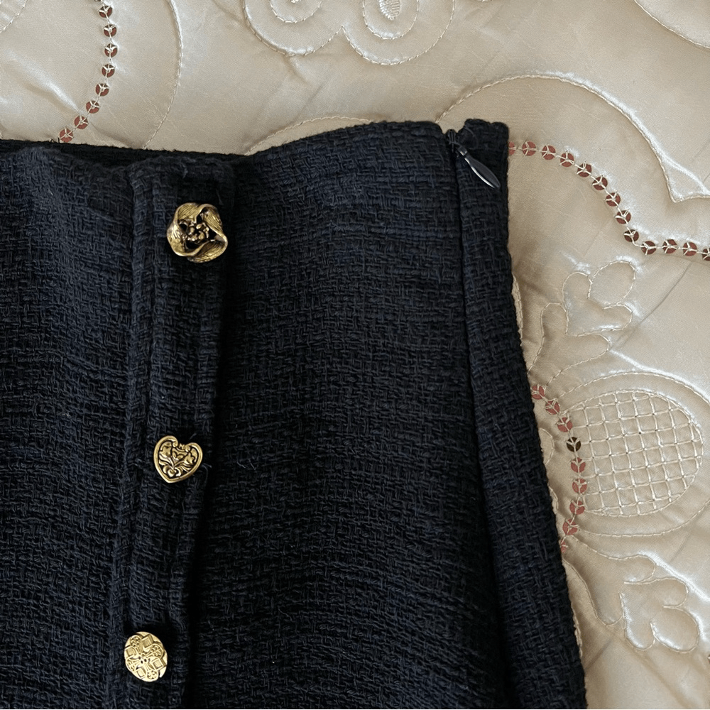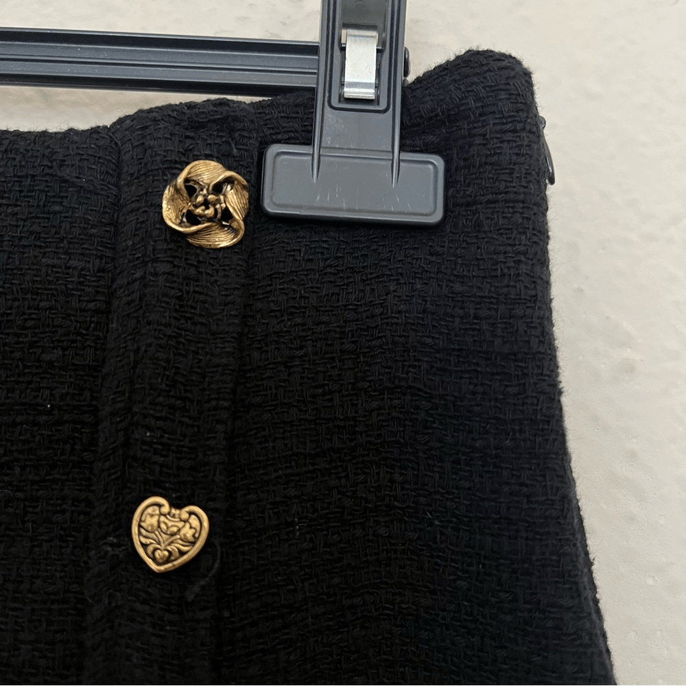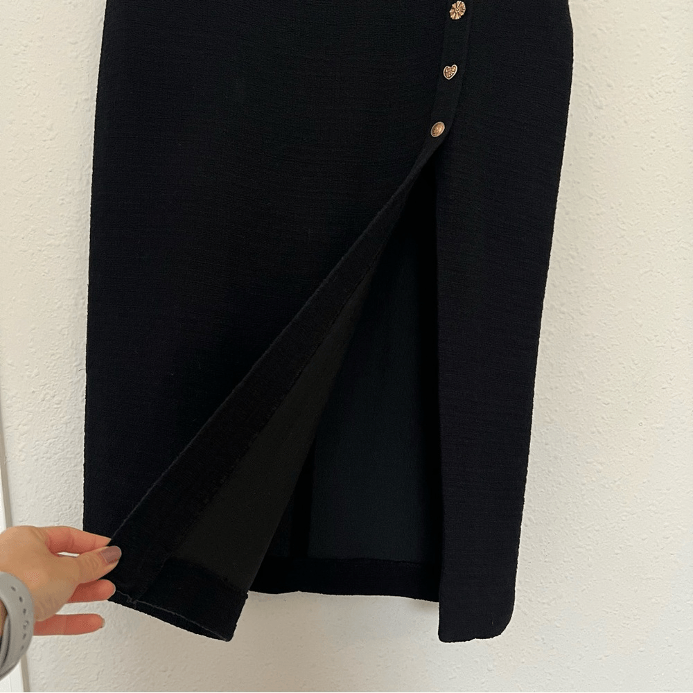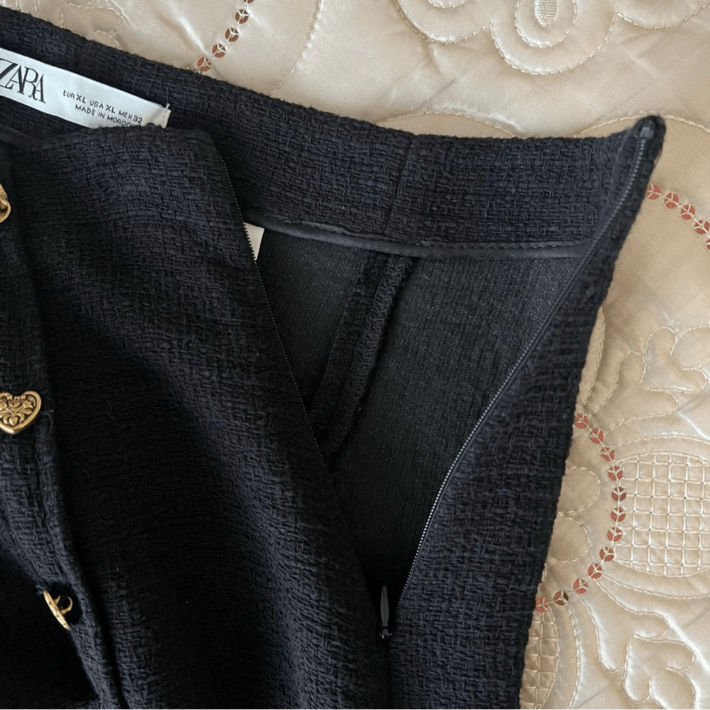 ZARA Textured Tweed Midi Skirt with Slit Gold Buttons NEW Size XL